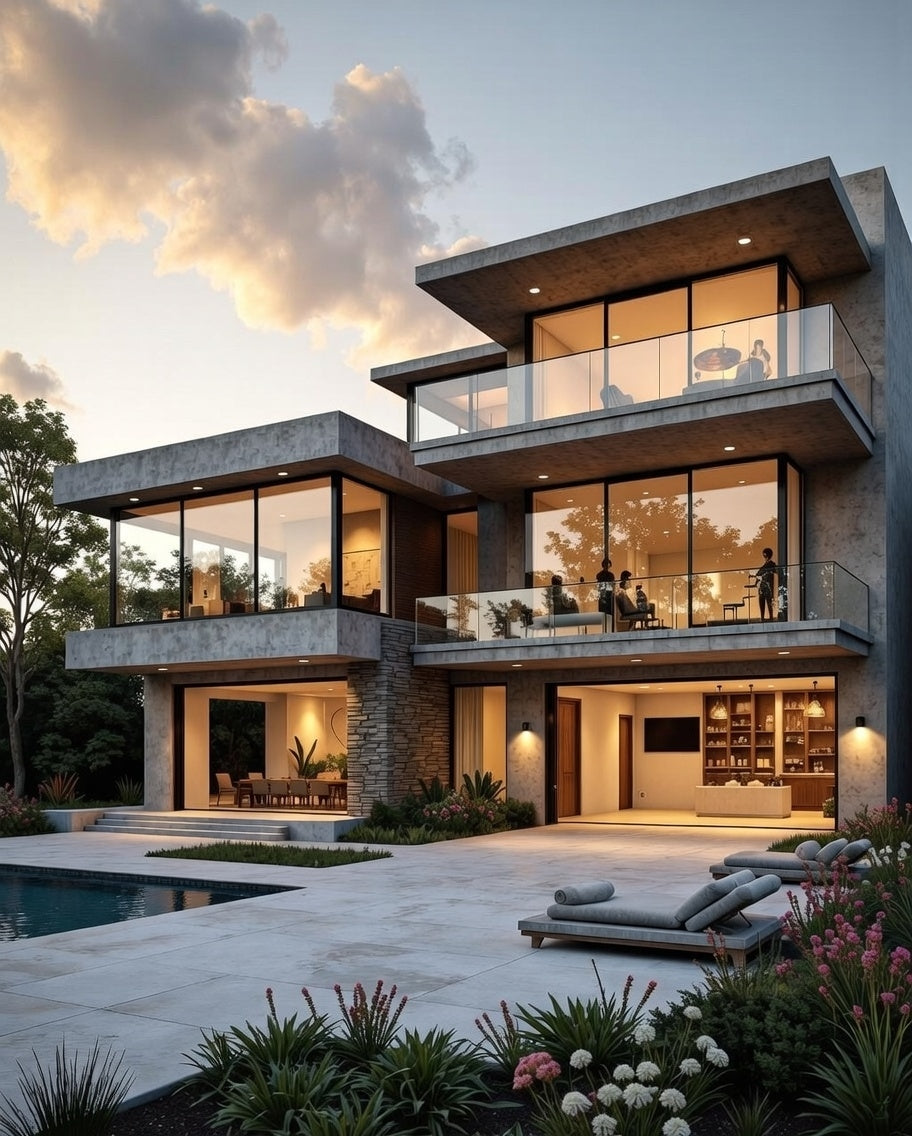 Proyecto contemporáneo de vivienda unifamiliar construida en bloques de hormigón visto, ideal para quienes buscan un diseño actual, funcional y de bajo mantenimiento.
