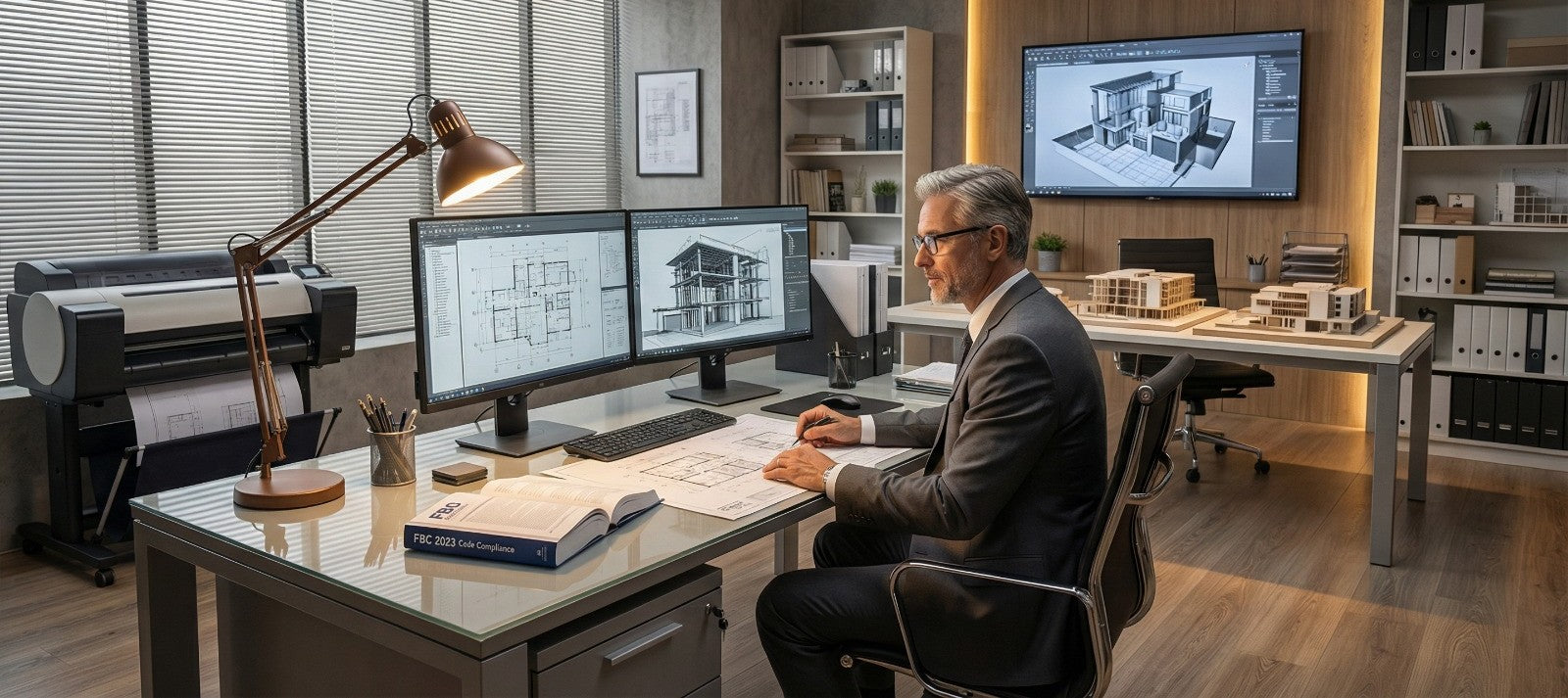 Ofrecemos soluciones integrales para proyectos residenciales y comerciales, especializados en legalizar construcciones sin permisos previos y en elaborar planos profesionales que cumplen todos los requisitos del FBC 2023.
